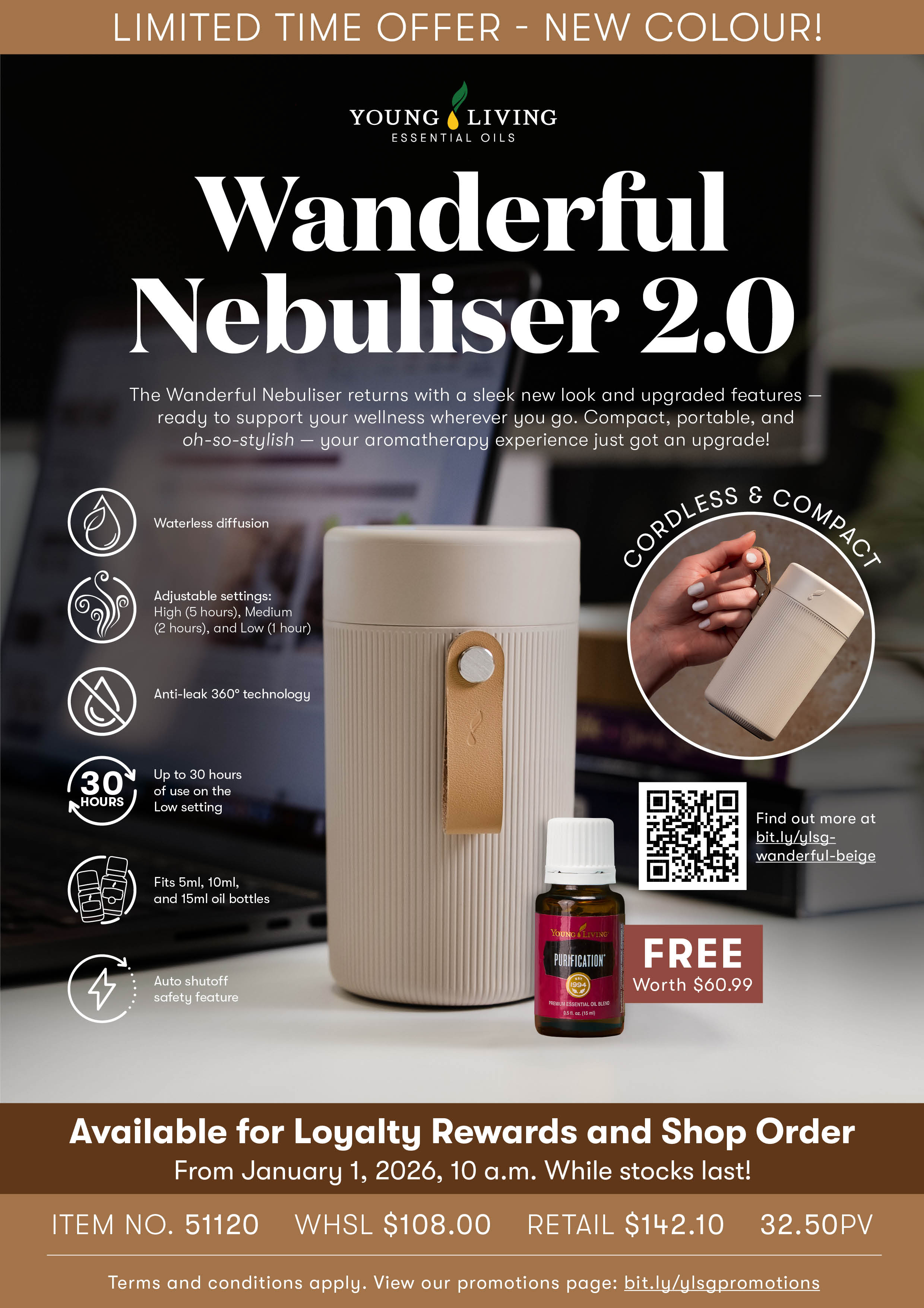 The Wanderful Nebuliser returns with a sleek new look and upgraded features — ready to support your wellness wherever you go. Compact, portable, and