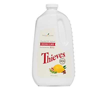 A clean, beautiful home invites family and friends to come together. But when your cleaning leaves a strong, chemical scent, others might not want to gather. Create a welcoming home that’s safe for everyone with the fresh and inviting scent of Thieves® Household Cleaner. Formulated with the power of Young Living’s Thieves oil blend, you can get a deep clean without dangerous or synthetic ingredients. Thieves cleaner also includes the scent of Lemon essential oil for an even more uplifting aroma. Chores will feel like less of a chore with the sweet-and-spicy scent and effective cleaning power of Thieves Household Cleaner. This all-purpose cleaner can be used on any surface in your home for dusting, spot cleaning, scrubbing, or any other cleaning need. Wherever you use it, you’ll feel good knowing it’s safe to use around everyone in your family, including pets. Spot test in an inconspicuous area before applying this product to woods, plastics, fabrics, and granite. If staining or damage occurs, discontinue use on the material. Suggested Ratios According to Usage • All-purpose cleaner: Combine 1 capful Thieves Household Cleaner and 2–3 cups water. • Degreaser: Combine 1 capful Thieves Household Cleaner and 2 cups water. For heavy cleaning, use half or quarter the amount of water. If necessary, use a cloth to apply Thieves Household Cleaner undiluted. After cleaning, wipe the area with a cloth dampened with water.
