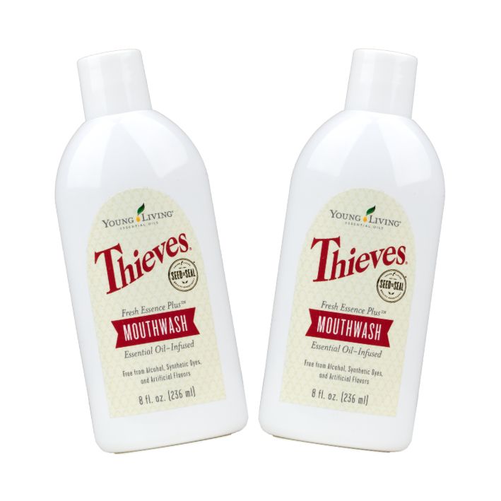 Rinse mouth with 1 tablespoon or capful of Thieves Fresh Essence Plus for 30–60 seconds as needed.
