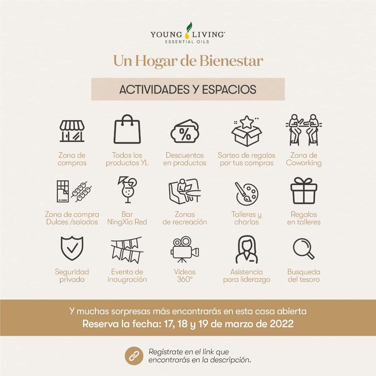 Un hogar de bienestar es un espacio recreativo y educativo para quien lo visite, en este evento aprenderás de manera dinámica y práctica el uso y beneficio de varios productos de origen natural que la familia Young Living tiene para ofrecerte y como estos se integran de manera sinérgica a cada espacio y momento del hogar.