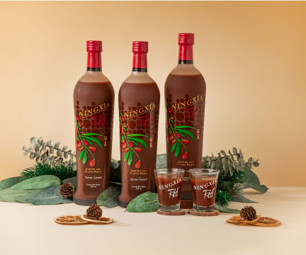 Compra NingXia Red 2pk 750ml y recibe 1 botella NingXia Red 750ml y 2 shots de vidrio temáticos.