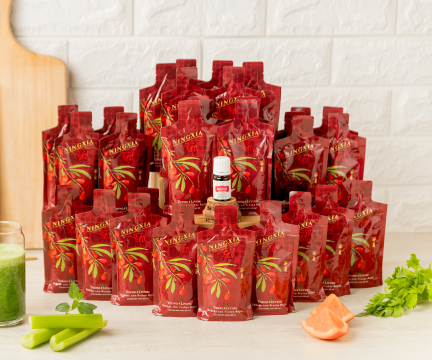Este set está diseñado para un consumo diario práctico y sencillo. NingXia Red® combina purés de frutas con ingredientes botánicos seleccionados, mientras que Grapefruit Vitality™ aporta un aroma cítrico fresco que complementa bebidas y recetas.