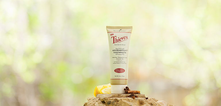 R: Una vida saludable no se trata solo de lo que comes y de cómo te mantienes activo, ¡se trata también de cuidar todo tu cuerpo! Mantén tus dientes sanos y una sonrisa espectacular con la pasta de dientes AromaBright ™ de Young Living, que utiliza nuestra popular mezcla Thieves para limpiar dientes y encías, sin el uso de fluoruro o de colorantes sintéticos.