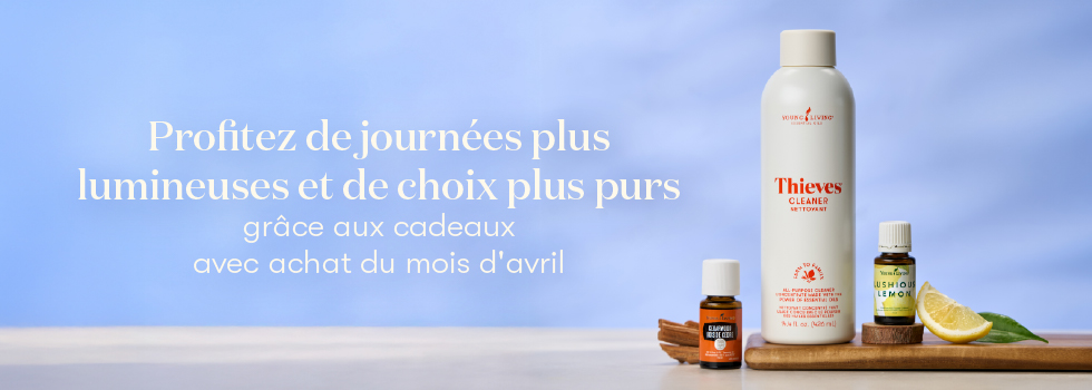 Commande Récompenses de Fidélité: Mélange d'huiles essentielles Lushious Lemon + Nettoyant ménager Thieves + Huile essentielle de bois de cèdre + 10 $ de crédit sur les produits (pour les commandes passées du 1er au 5 avril seulement)