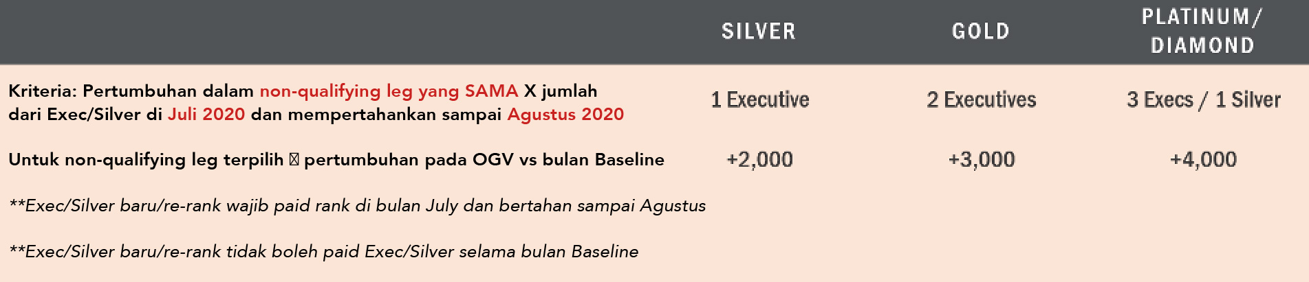 Periode kualifikasi dimulai 1 April 2020, pukul 00:01 WIB dan berakhir 31 Juli 2020, pukul 23:59 WIB. Penetapan waktu adalah kebijakan dari Young Living Indonesia dan tidak dapat diganggu gugat.