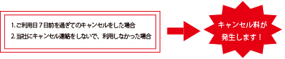 ※ご利用予定日の7日前が弊社休業日に当たる場合には、前営業日までのご連絡でキャンセル料なしが適用されます。