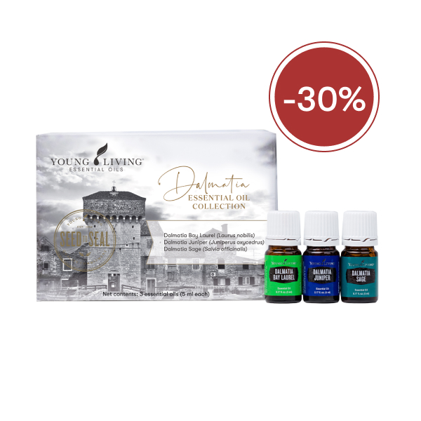 Include 3 uleiuri de 5 ml de la ferma Dalmatia Aromatic a Young Living de lângă Marea Adriatică, în Split, Croația.