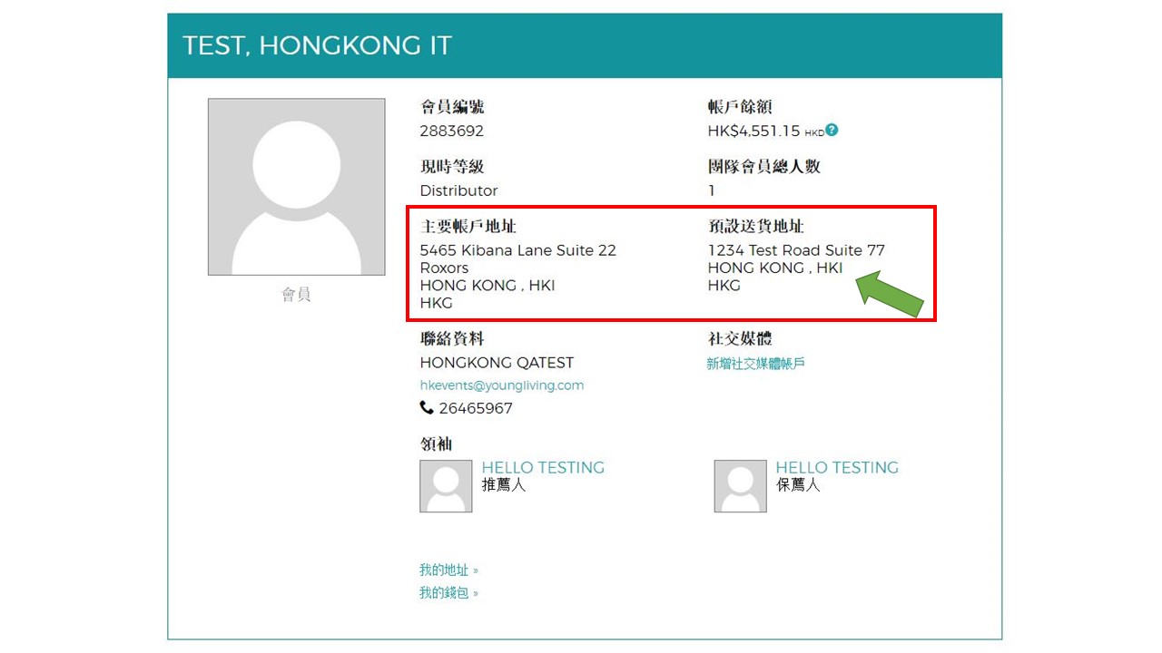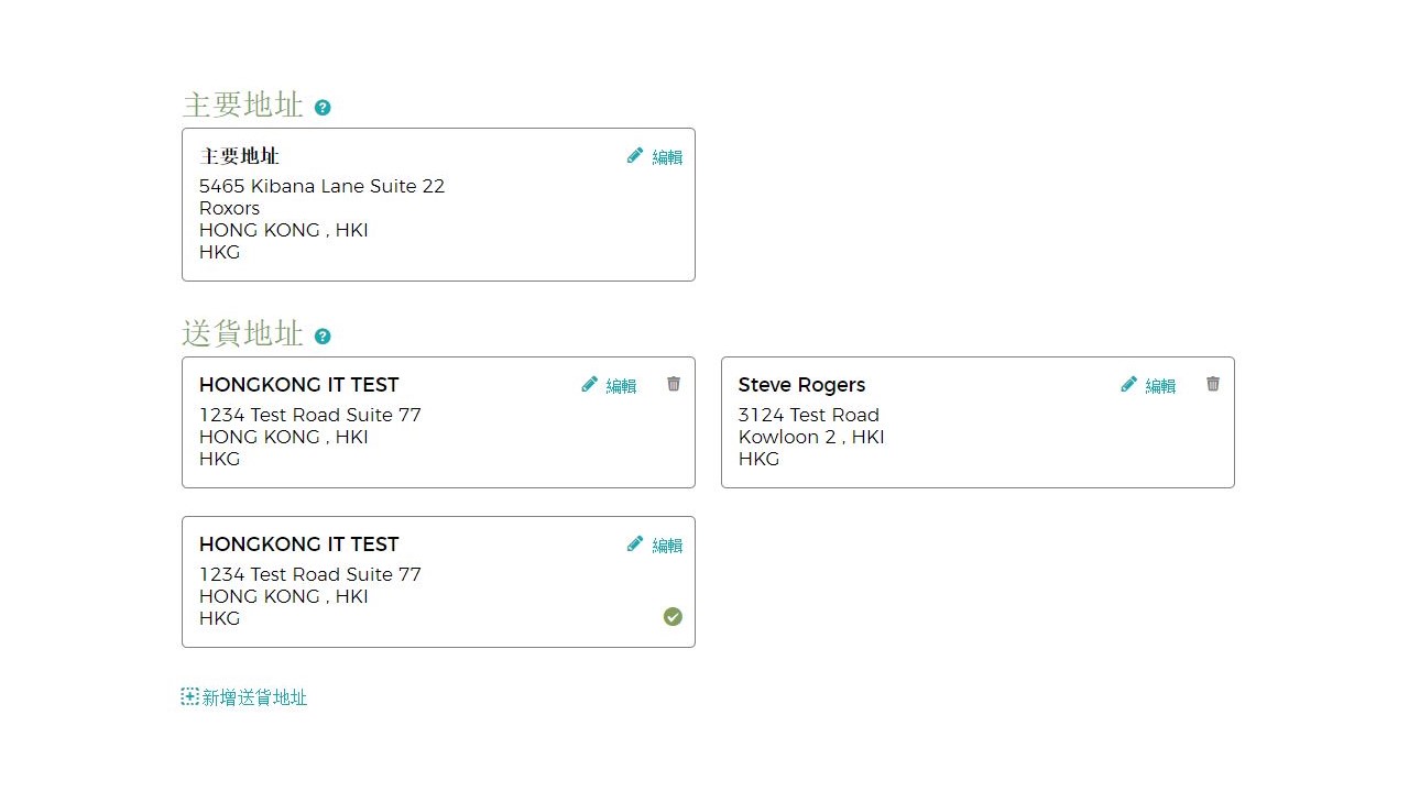 2. 查看「我的帳戶」是否列出已更新及正確的通訊與預設送貨地址。