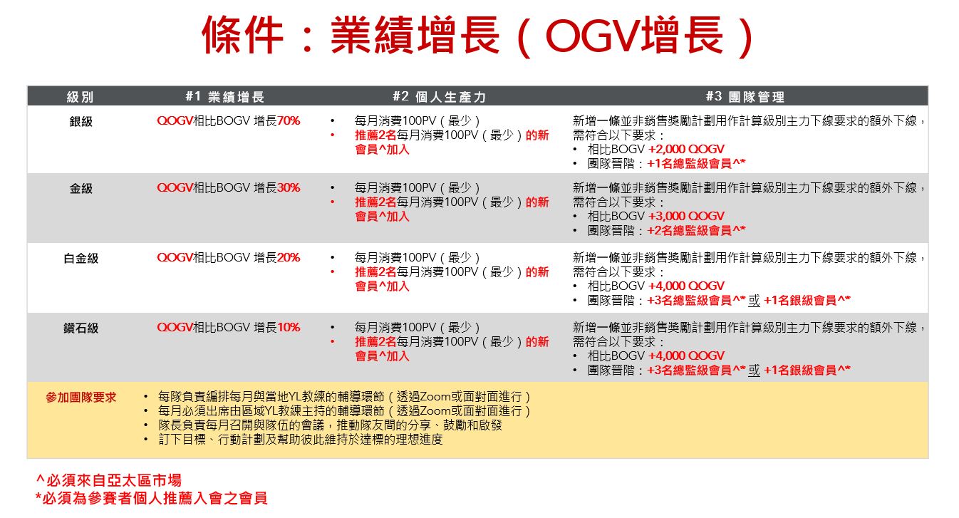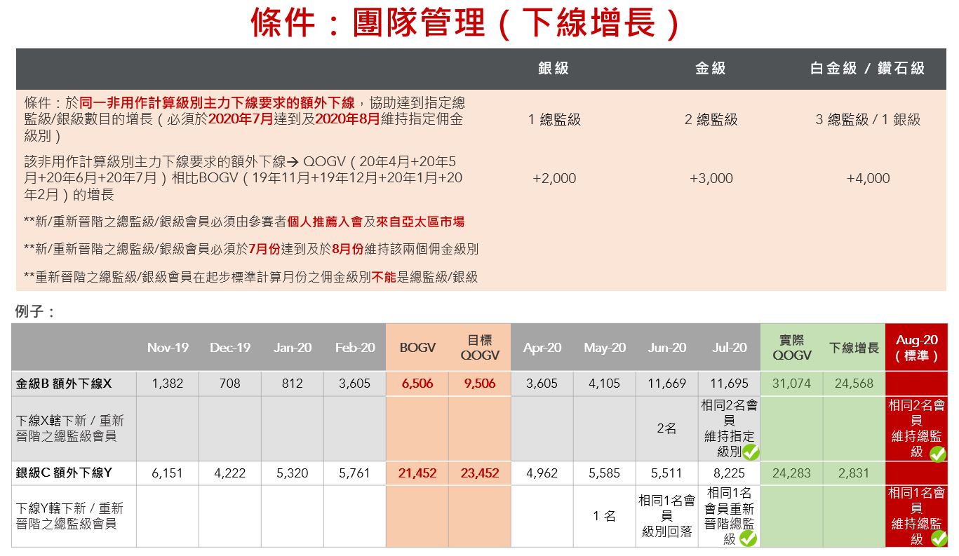 於達標期間完成下列全部3項要求(#1-3)之參賽者,將可取得參加本獎賞之旅的資格。參賽級別根據會員2020年2月的佣金級別計算。