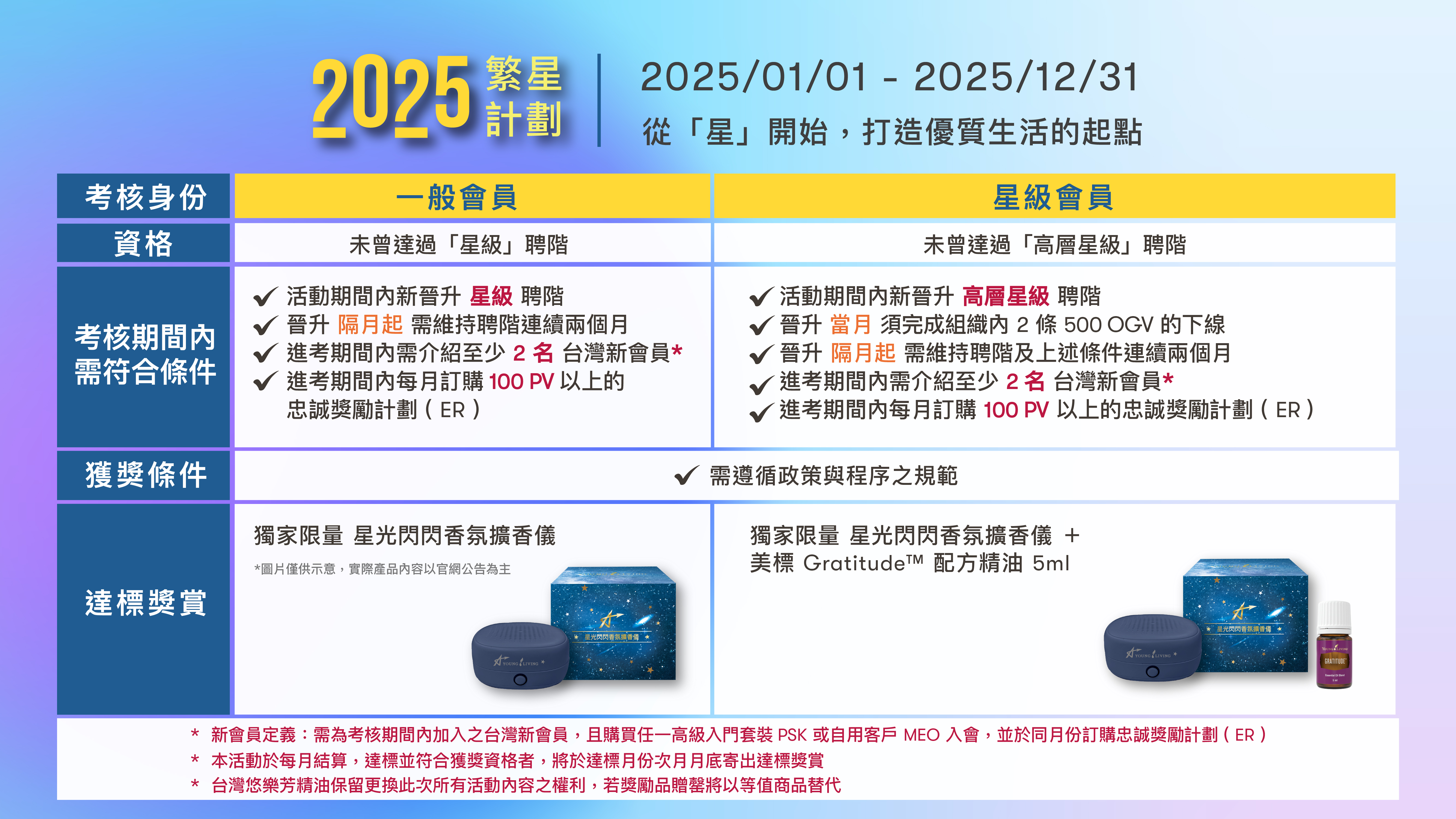 若獲獎會員於達標期間內曾經更改保薦人(sponsor)、介紹人(Enroller),Young Living將保留最終決定權。