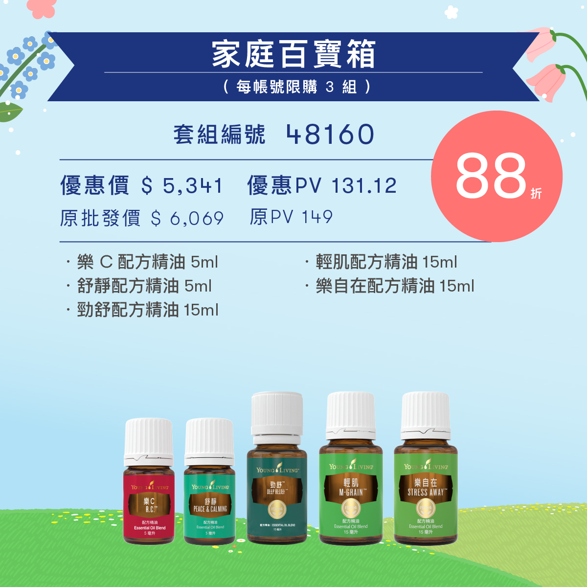 此套組內含融合多種精油為您帶來清爽感受的勁舒配方精油 、能幫助您舒緩放鬆的輕肌配方精油、在吸吐間注入活力的樂C配方精油 、擁有具有獨特異國香氣,為您帶來輕鬆魔力的舒靜配方精油及樂自在配方精油 ,搭贈可使身心平靜的經典款薰衣草精油 ,為您的家庭激發活力精神,全方位防護全家大小的精氣神!| 項目編號 | |
