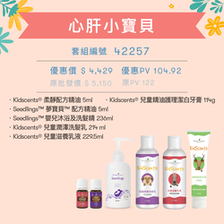 本套組內含能讓寶貝們舒緩緊繃身心的KidScents®柔靜配方精油、使安心入睡的夢寶貝配方精油、全天然成分的嬰幼兒護膚系列產品(KidScents®兒童滋養乳液、KidScents®兒童潤澤洗髮乳、KidScents®兒童精油護理潔白牙膏、嬰兒沐浴及洗髮精)。洗完澡、刷刷牙、塗抹乳液搭配輕柔按摩,撫慰身心、環繞著芳香氣息入睡。