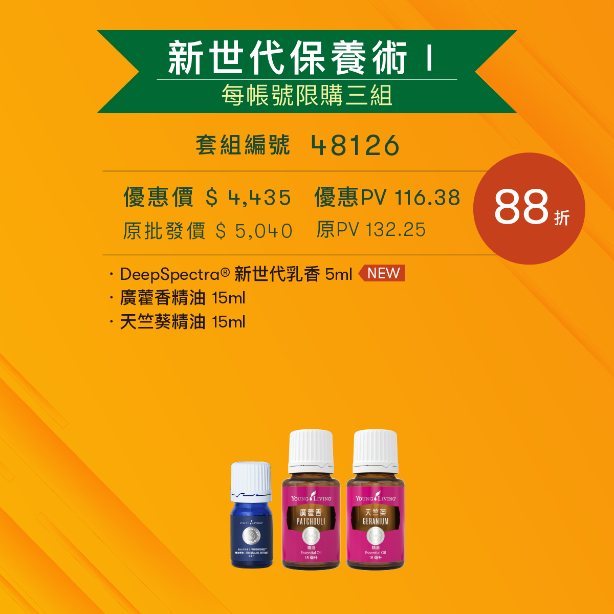 此套組內含具有揉合異國香氣,能維持膚色亮麗光彩的新世代乳香™精油,搭配強化肌膚防禦力的廣藿香精油,讓完美氣色滲透您的世界,帶來舒緩放鬆平靜的美麗人生!| 項目編號 | |