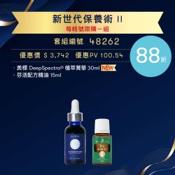 此套組內含可賦予您肌膚彈性水潤同時提升日常保護力的DeepSpectra® 植萃菁華,搭配擁有清新香甜氣息的芬活配方精油,彷彿置身於生機盎然的大自然之中,呼吸間都如同吸收一場森林沐浴的能量芬多精!| 項目編號 | |