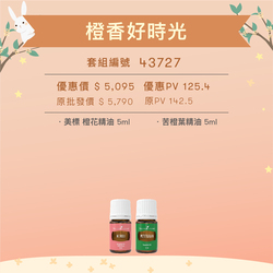 本套組內含帶有幸福浪漫氣氛,擁有清新花香的美標橙花,搭配散發著優雅柑橘香氣,能幫助舒緩情緒的苦橙葉,為您帶來振奮愉悅的好心情,守護專屬於您的美好小確幸!
