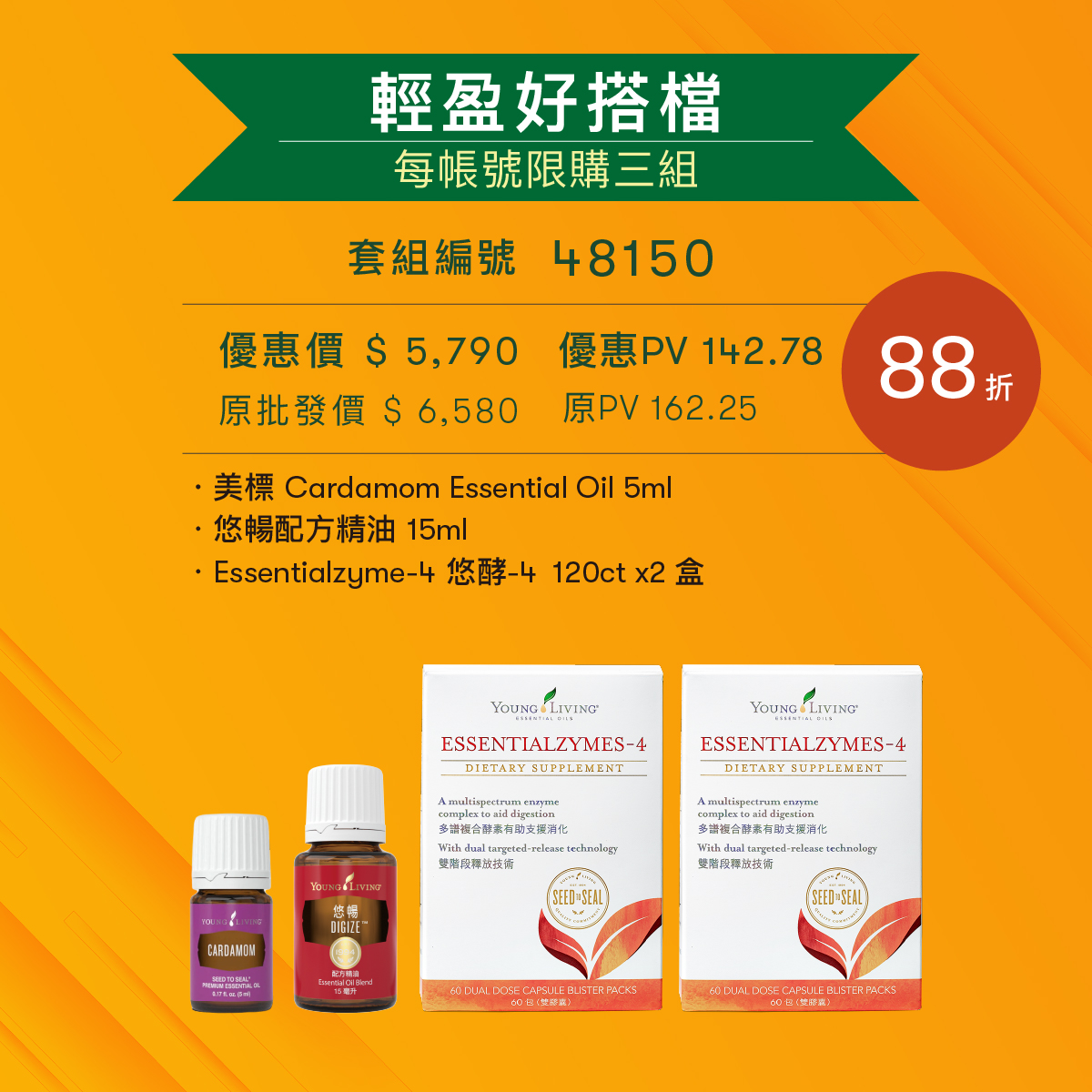 此套組內含補充活力維持好心情的茴香精油、散發出獨特異國香氣的悠暢配方精油,搭配有助於消化達到最佳營養吸收的悠酵-4,為身體注入窈窕輕鬆美,喚醒活力時刻隨時暢快森呼吸!