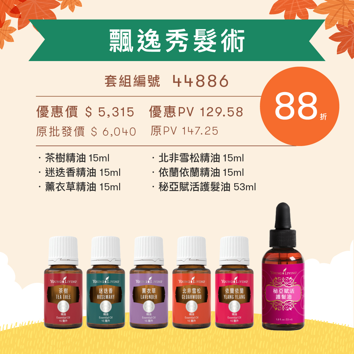 本套組內含有助保持秀髮健康的北非雪松、舒緩情緒具有修護作用的薰衣草、平衡油脂分泌可用於頭皮調理的迷迭香和茶樹,搭配激發正面思維的KidScents®活力寶貝配方精油,維持動人光澤的秘密,為您編織出最耀眼的精彩光芒!