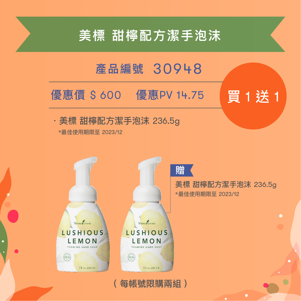 Lushious Lemon甜檸系列氣味清新,散發著Young Living 獨特且令人煥發精神、心情愉悅的柑橘香氣,其配方溫和能使您在清潔雙手的同時有效呵護肌膚。 |