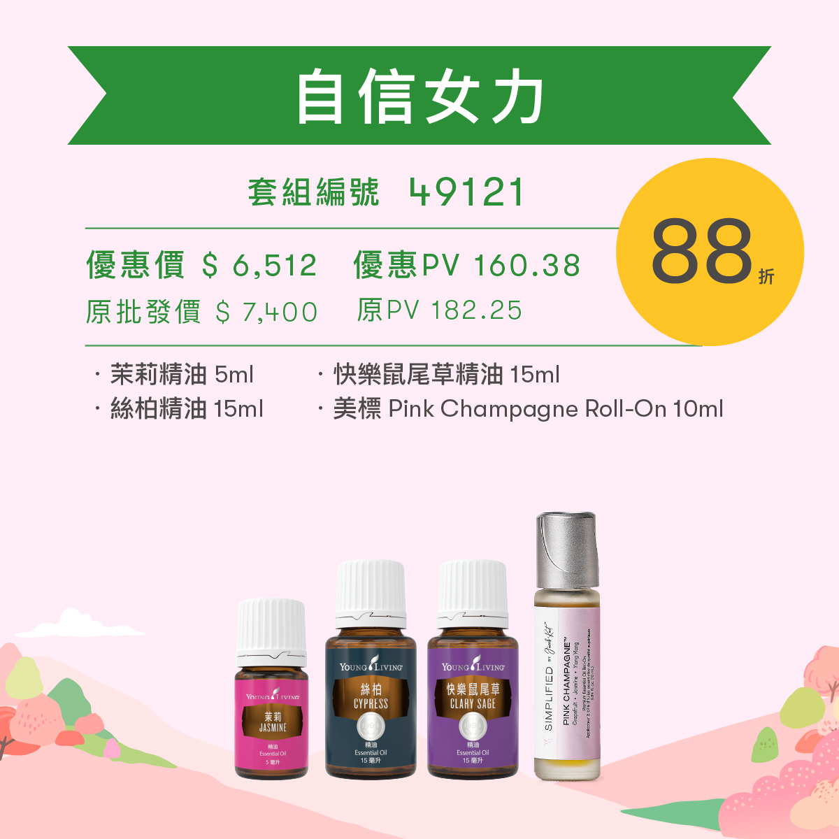 女力當道,帶給您滿滿的自信與活力,綻放每日光采,讓您閃耀動人。在眾多精選套組中,這款特別集結了肌膚亮澤的茉莉、充滿活力的快樂鼠尾草,以及能強化防禦力並散發清新氣息的絲柏。更特別的是,期間限定的粉紅香檳滾珠精油,為這組套組增添奢華與迷人的香氣,彷彿一場優雅盛宴,讓每一天都閃耀自信。在春意盎然的三月,讓這組專屬呵護滋養您的肌膚,展現獨一無二的魅力。 |