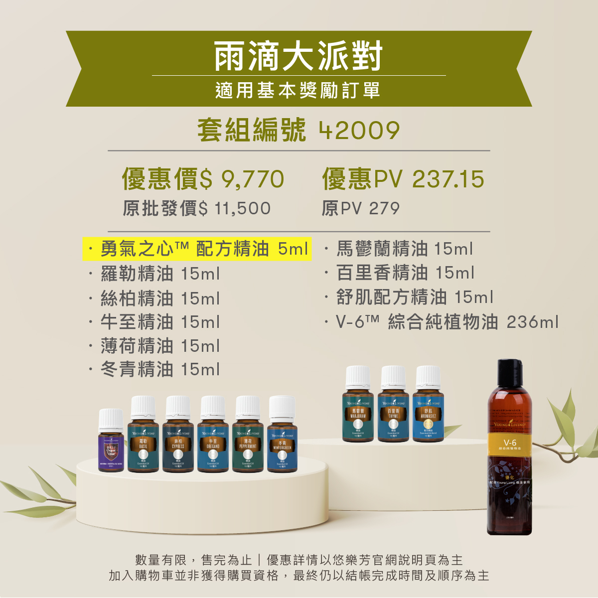 「春意盎然迎芬芳優惠套組」可於《標準訂單》或《基本獎勵計劃訂單》中訂購; 若同時於兩種訂單訂購「春意盎然迎芬芳優惠套組」品項,兩者運費不可合併計算。