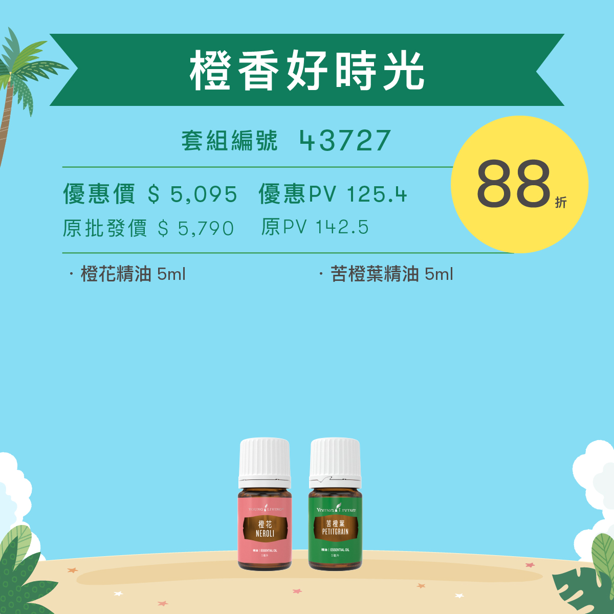 本套組內含帶有幸福浪漫氣氛,擁有清新花香的美標橙花,搭配散發著優雅柑橘香氣,能幫助舒緩情緒的苦橙葉,為您帶來振奮愉悅的好心情,守護專屬於您的美好小確幸! |