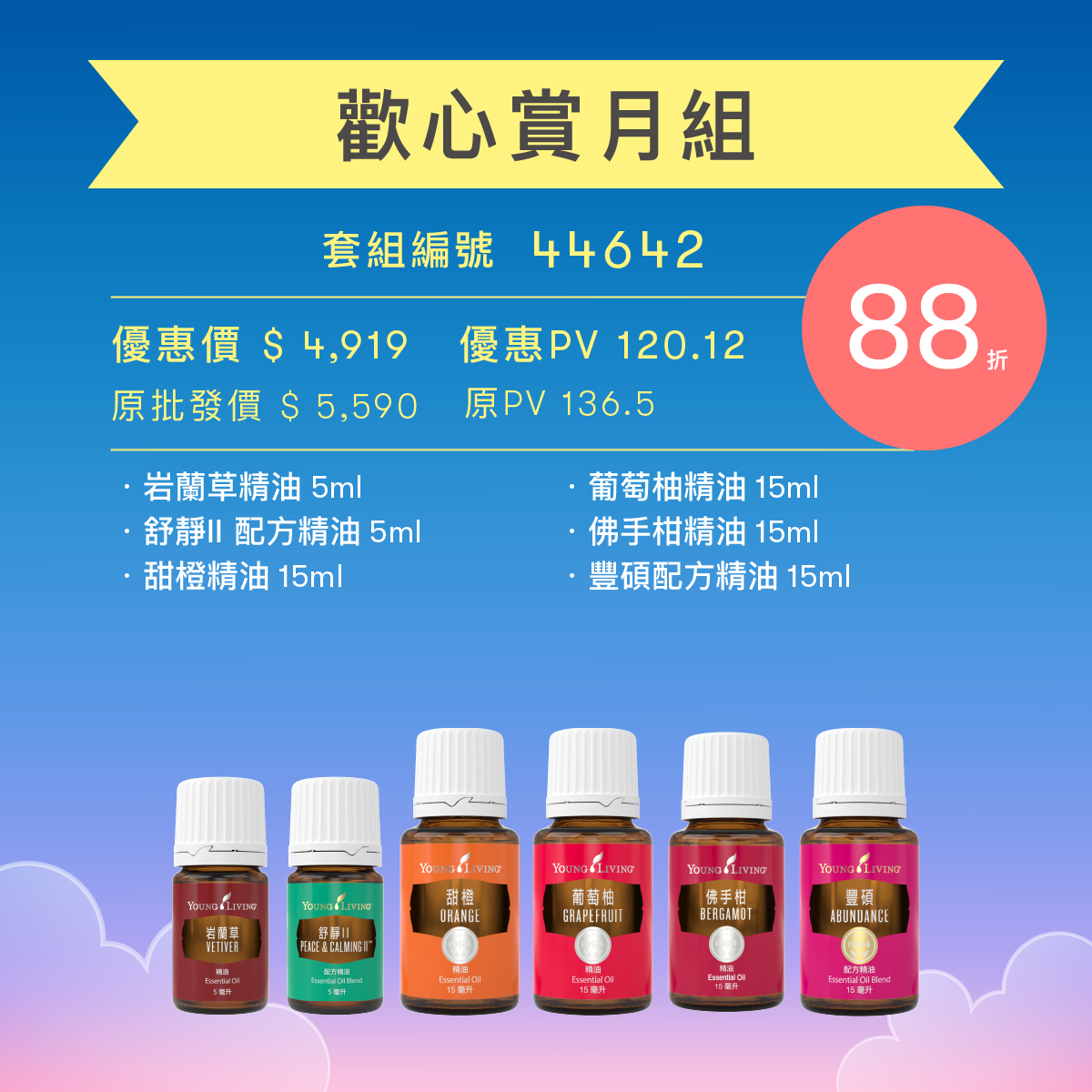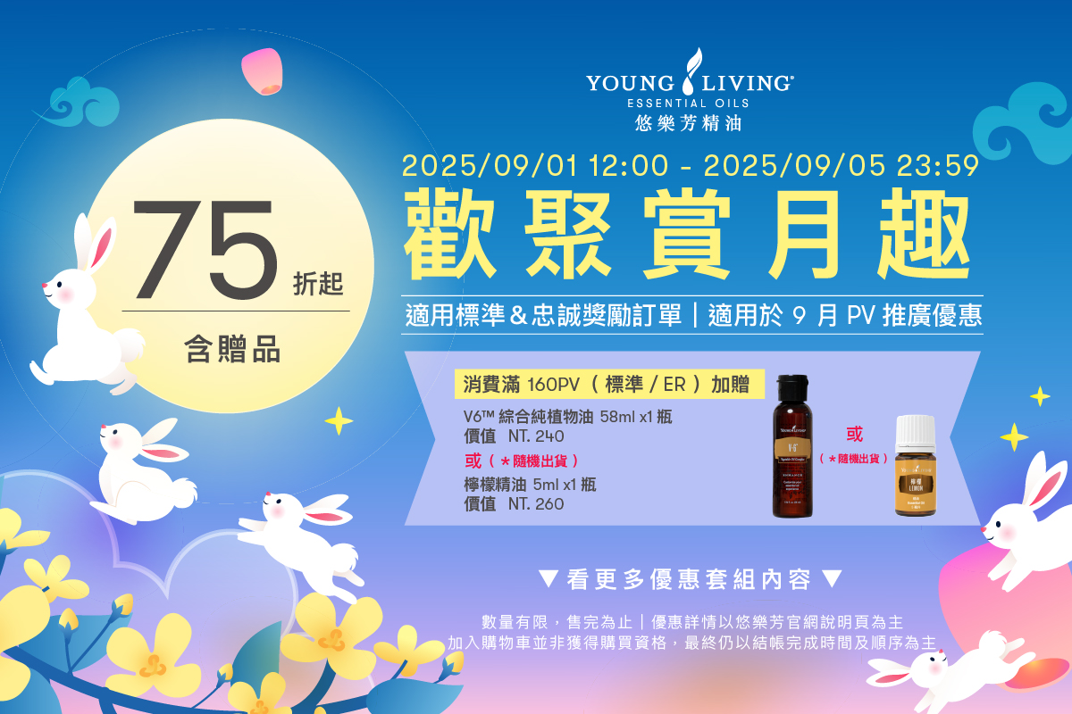 凝聚愛與能量,讓滿滿星光伴隨賞月! 此套組內含具有清新香氣的的葡萄柚、有助於振奮精神的佛手柑、帶來平靜氣息令人放鬆的甜橙、舒緩緊繃情緒的岩蘭草及舒靜II配方精油,和幫助提高能量的豐碩配方精油。多種感官體驗一次滿足,由內而外的凝聚愛與能量,讓月圓之日圓滿正向! |