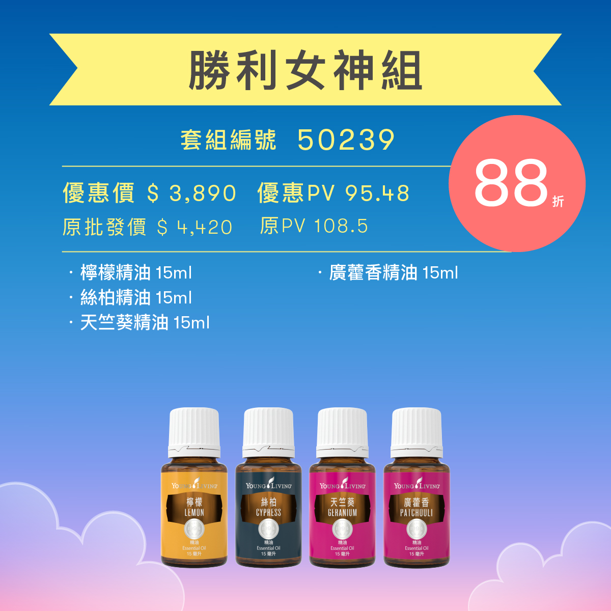 以清新花草香氣喚醒自信能量,讓你在生活與挑戰中展現堅定與優雅! 此套組結合充滿活力的檸檬、柔美花香的天竺葵、帶來穩重氛圍的絲柏,以及沉穩厚實的廣藿香,宛如勝利女神的庇佑,助你勇敢迎接每一個目標,散發專屬的自信光采。 |