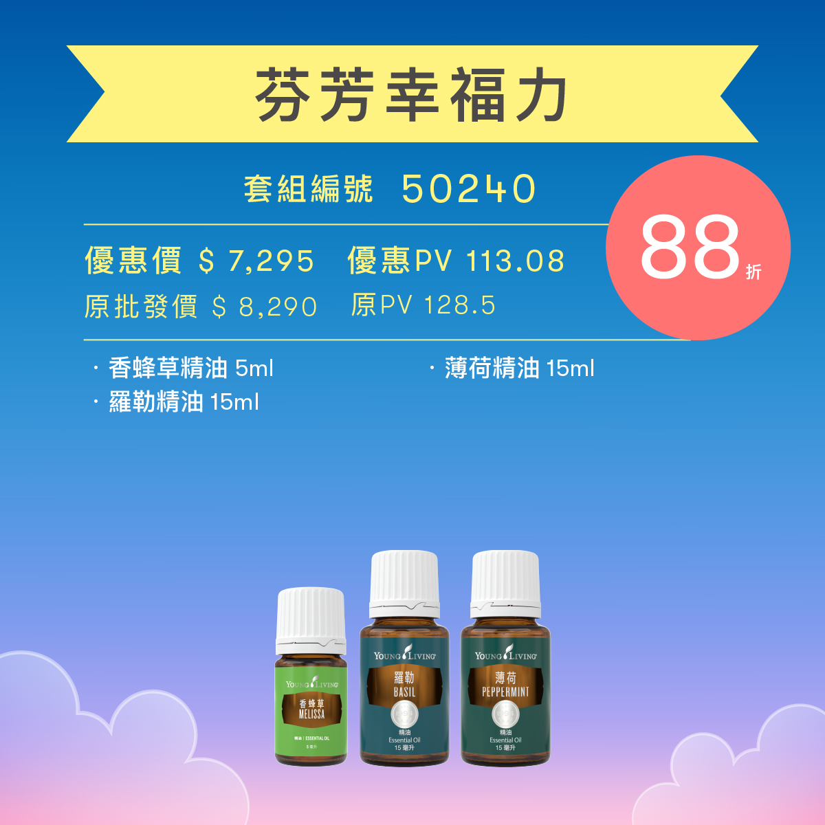 用自然香氣點亮心情,讓幸福感隨時滿格! 此套組結合清甜柔和的香蜂草、充滿草本活力的羅勒,以及沁涼振奮的薄荷,為日常注入滿滿能量。從早晨到夜晚,隨時都能釋放愉悅氛圍,打造專屬你的幸福循環。 |
