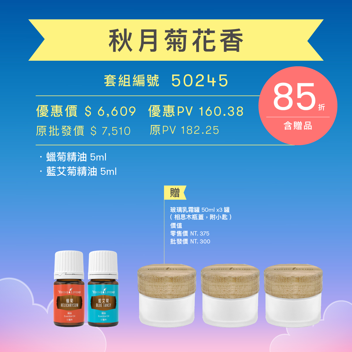 以花草香氣,寫下屬於秋日的寧靜篇章。 此套組結合藍艾菊與蠟菊兩款精油,藍艾菊散發柔和沉穩的氣息,搭配蠟菊獨特的溫潤香韻,為生活注入安定與平衡,陪伴你在秋日光影中細細品味靜好時光。 |